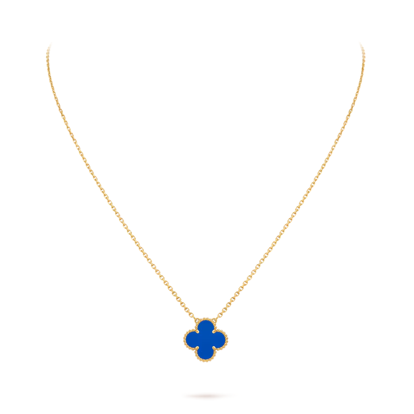 Підвіска Vintage Alhambra 1 мотив, золото 750 проби, інкрустована натуральним агатом. Довжина ланцюжка: 42 см.